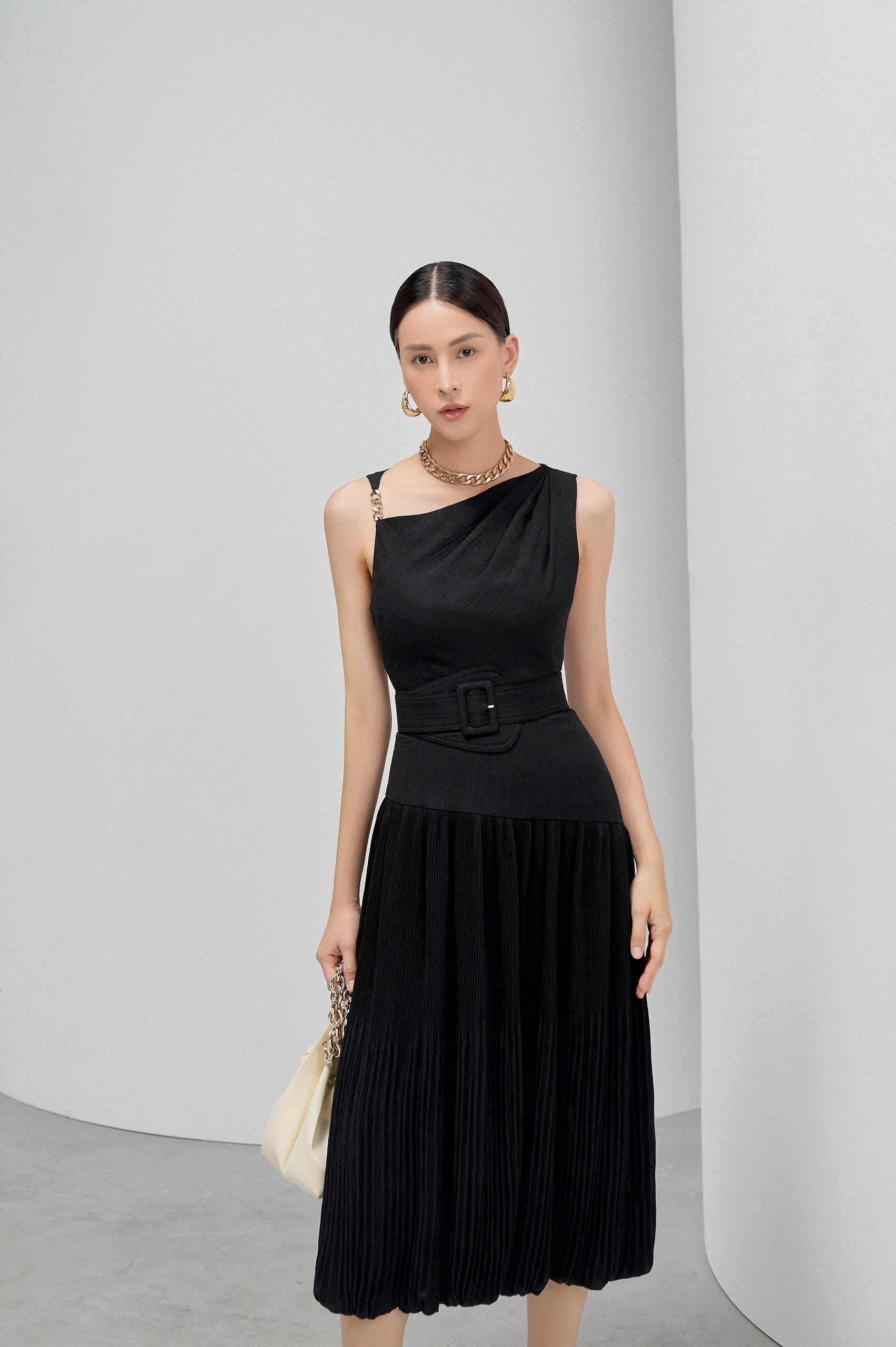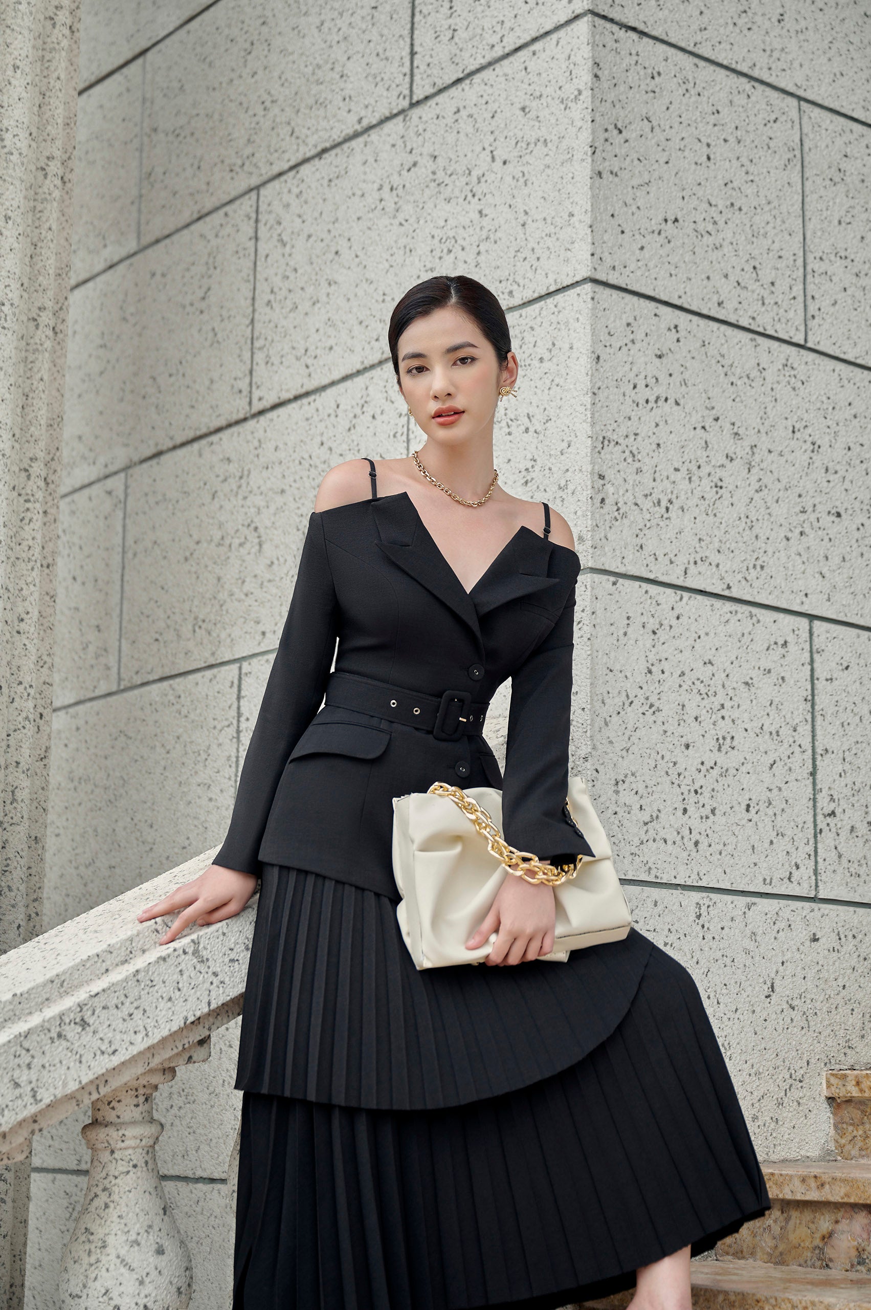 Subtle beauty in black and white colors has always been L’ALLÉE’s endless inspiration through its collections. This summer L’ALLÉE wants to convey that inspiration to the ladies through Twinkle Dress.The design of the shoulder pleated neckline creates a personality highlight along with the waist mixed with a youthful and dynamic large belt.The form of the bear bum is trendy and youthful, using the technique of stamping to create a material surface effect to make the design more modern and personal.