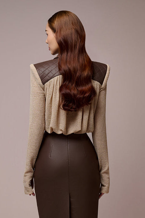 In a delicate, demure shade of camel shade, elegant emotions are portraited with L’ALLÉE’s latest Caria Set. The combination of a relaxed croptop with pencil skirt create sensual lines for the woman. Along that is the use of simili leather to highlight the shoulder and collar with smocking details on the hips for a stylist, modern touch. Experience Caria in store today!