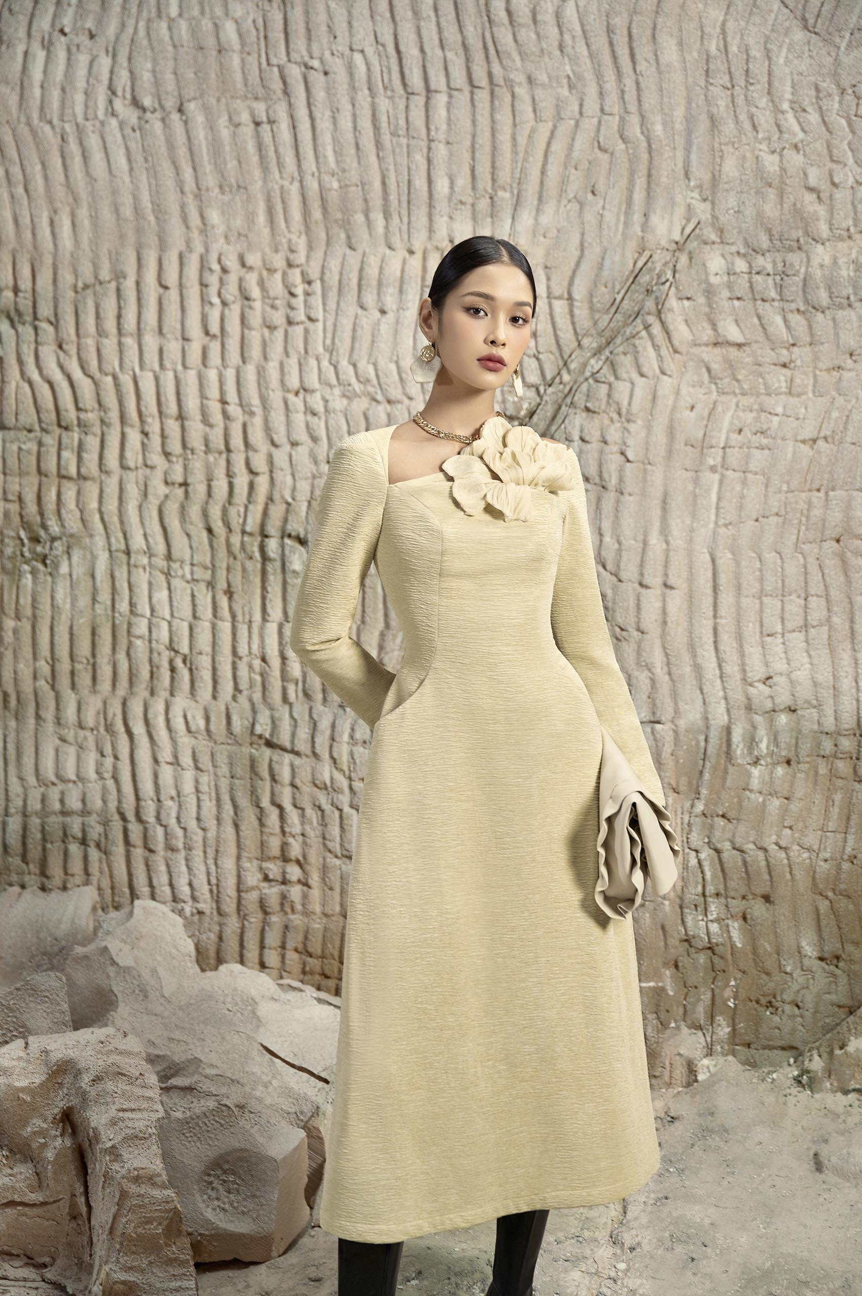 Floral 3D Diagonal Neck Dress by L’ALLÉE is an elegant but also haughty design.The off-shoulder design and sophisticated, sophisticated 3D flower applique will enchant any lady.