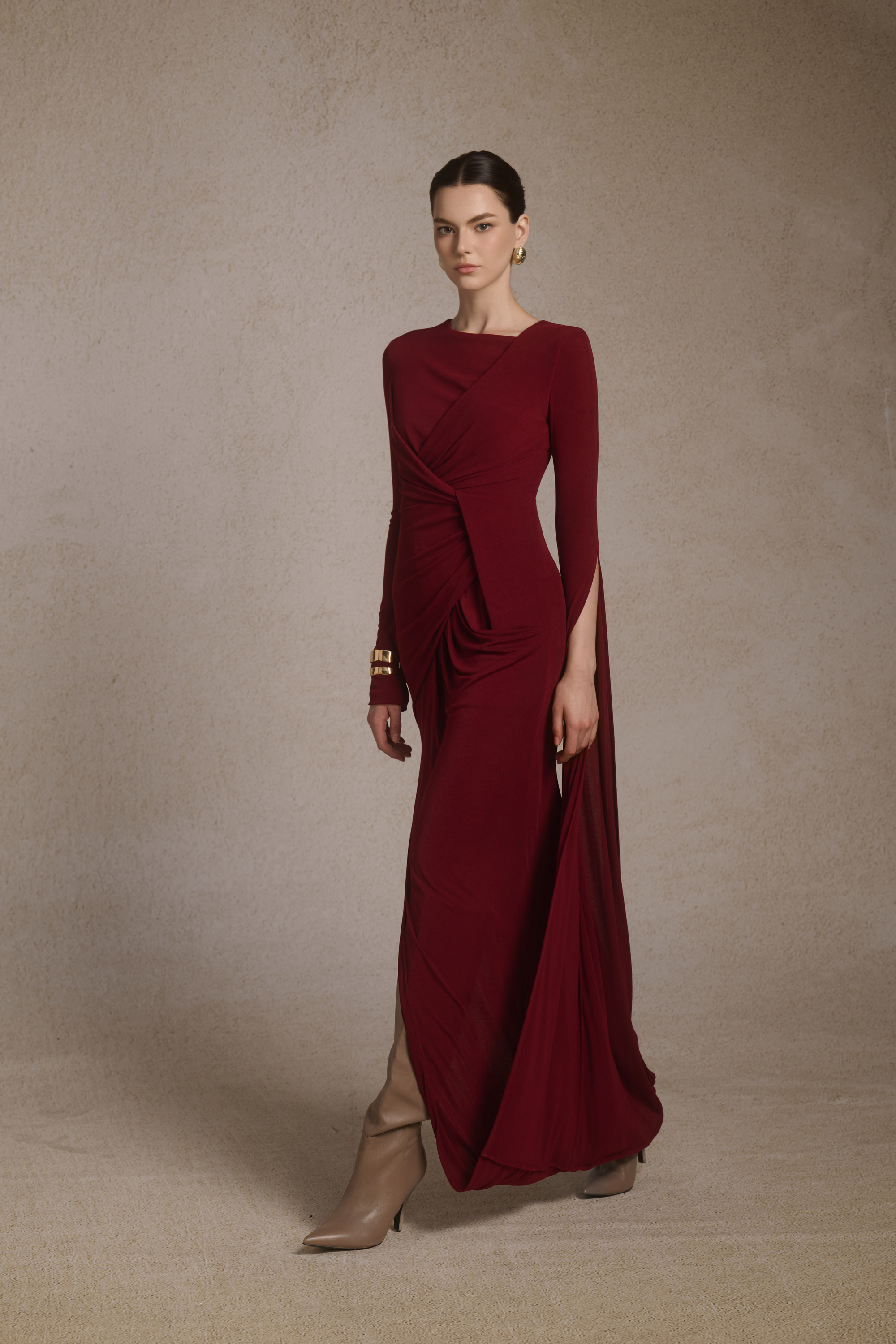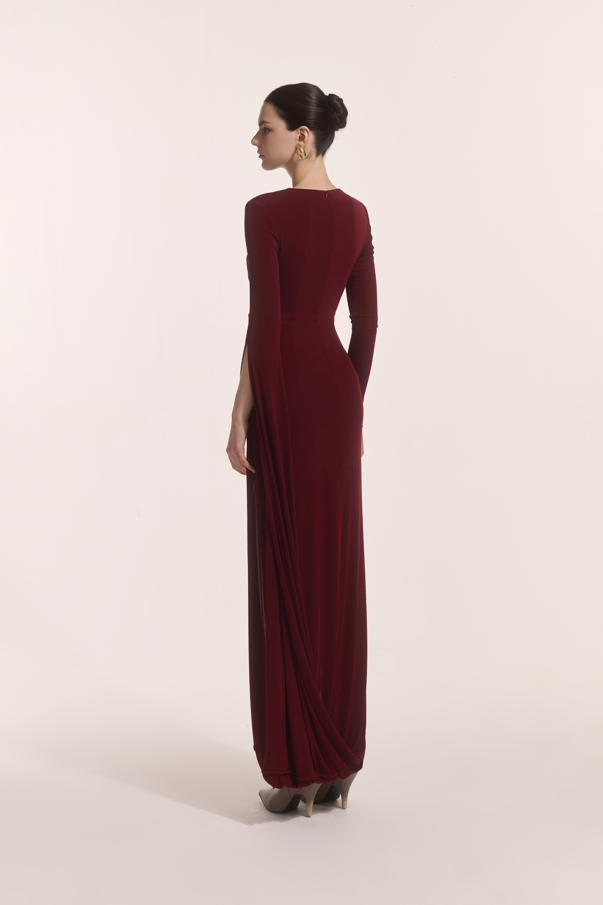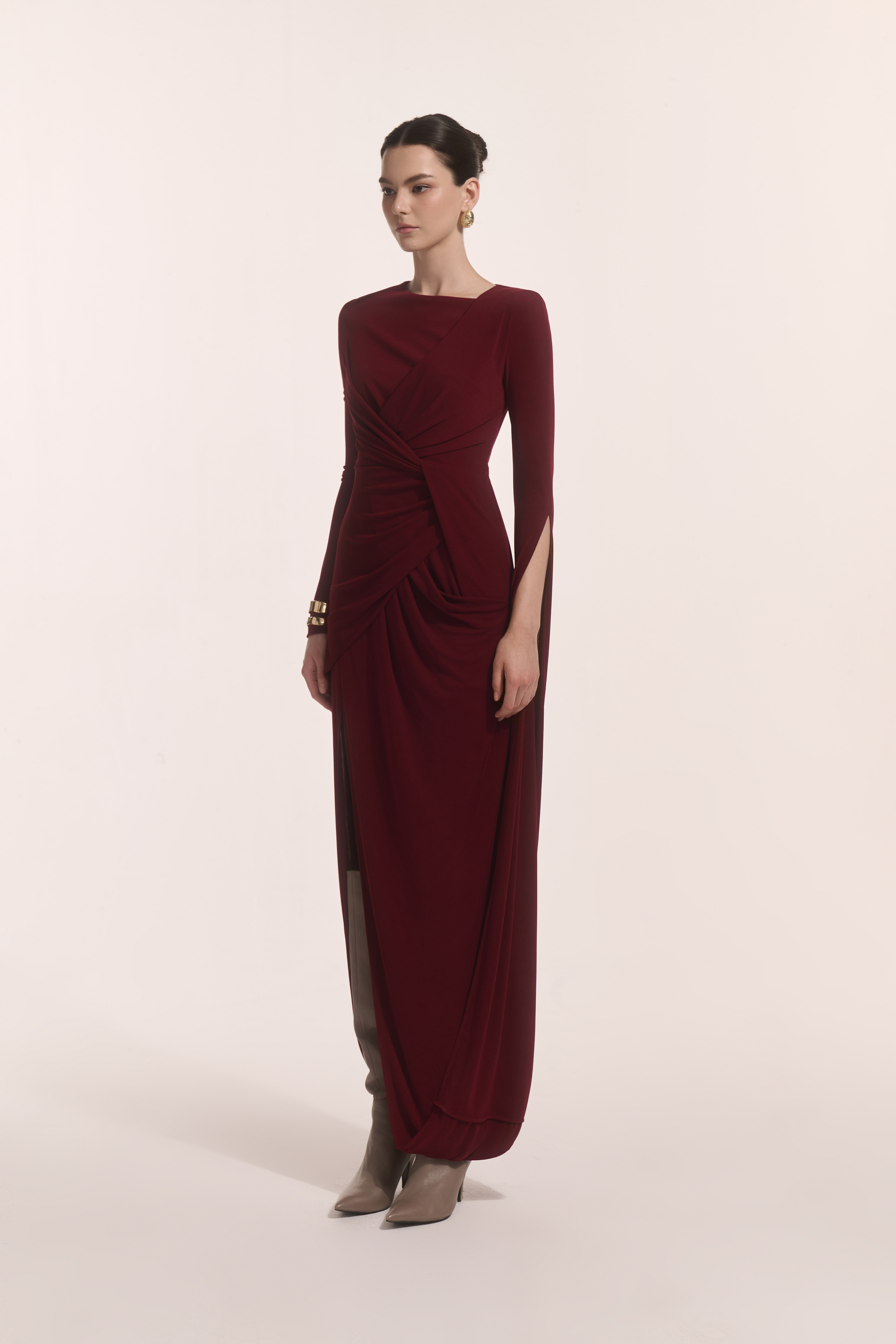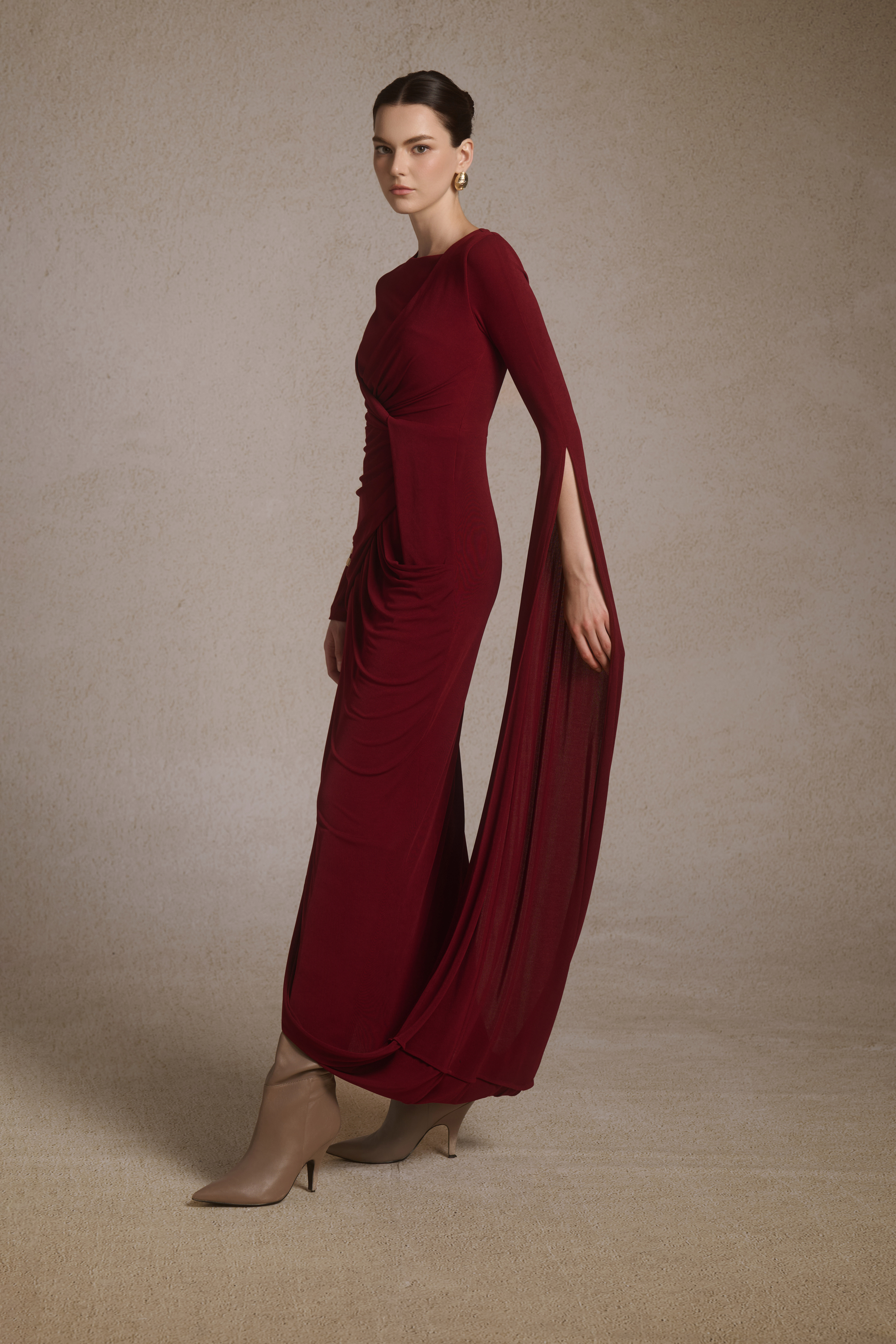 Lunara Tiered Midi in Burgundy Sale price$512.15 USD Regular price$539.10 USD